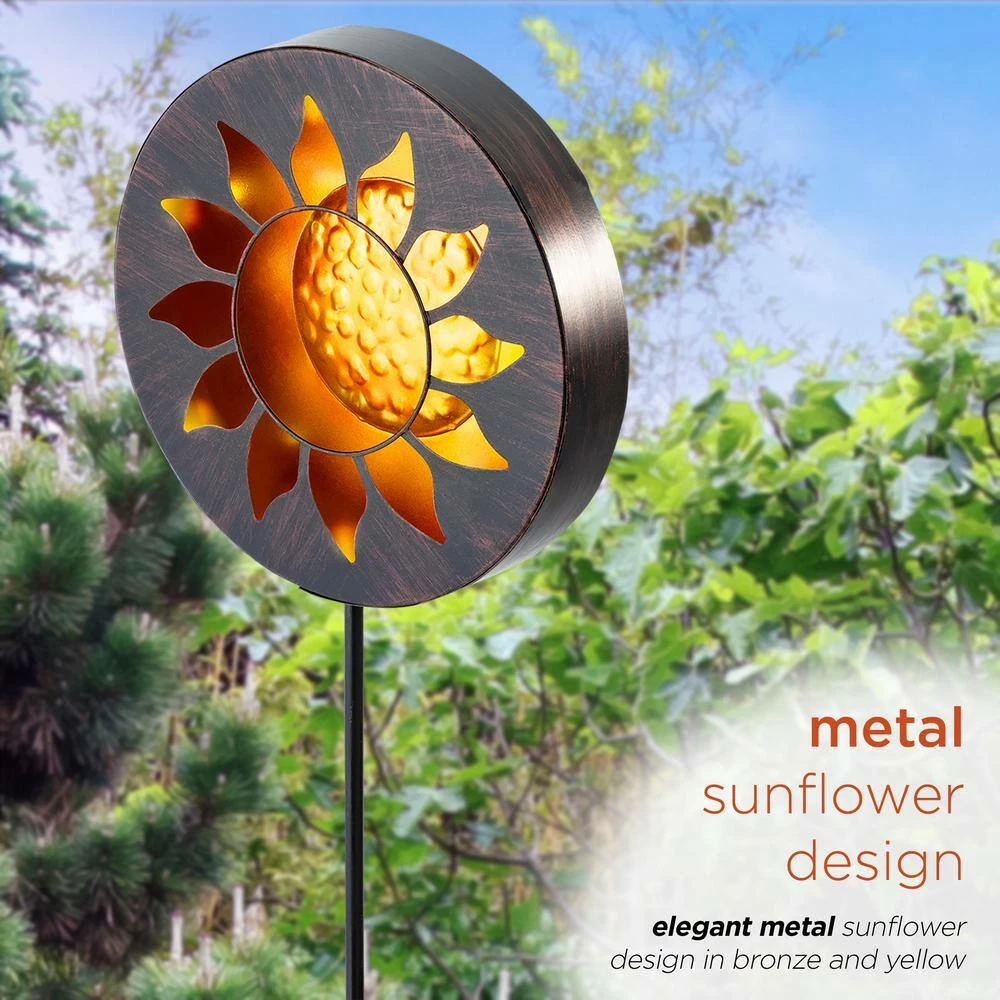 - Outdoor garden decor: garden stake features a sunflower design with LED lights powered by solar energy, and provides a unique and fun addition to your home’s exterior decor