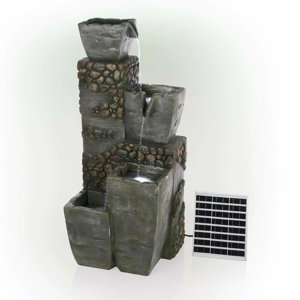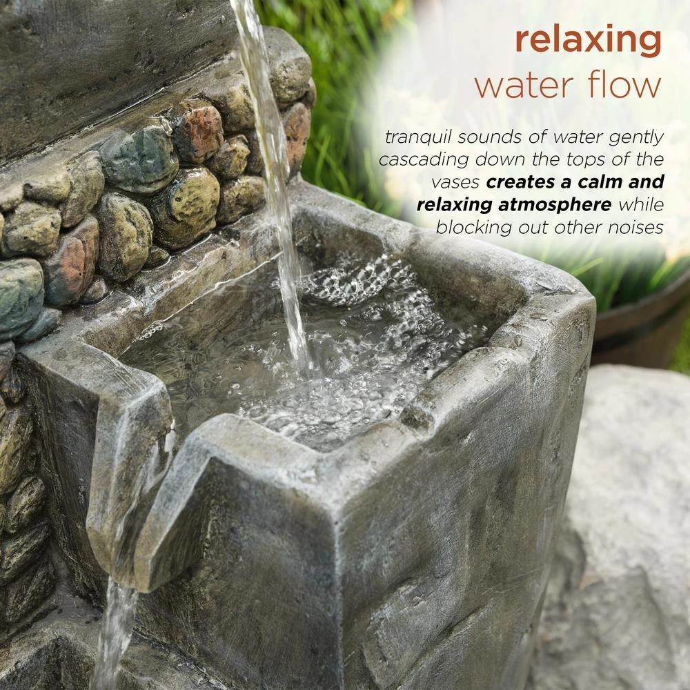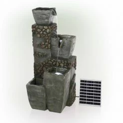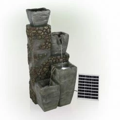 Elevate your home’s outdoor appearance with the Alpine Corporation 43 in. H Solar 4-Tier Cascading Vase Fountain with LED Lights, this cascading fountain provides a tranquil and soothing addition to your porch, backyard or Sunroom. Constructed from durable polystone and fiberglass with a modern Zen look, the fountain is weather-resistant, rust-resistant and resilient, this statue will bring a touch of charm to your outdoor space, the fountain becomes illuminated with the included solar-powered cool white LED lights and is sure to light up your garden or patio. Relax to the sounds of the soft, natural water flow as it trickles down through the fountain. Not only will the fountain provide you with serenity, it will also add a breathtaking display of beauty to your outdoor area, this majestic fountain provides an elegant addition to your courtyard and it gives your garden visual interest with its timeless design and classic style. for quick installation and convenient operating, the water fountain includes all necessary parts and a pump to begin creating an outdoor oasis and it lasts a minimum of 5-hours on a full solar charge, this decorative water fountain measures 19 in. L x 16 in. W x 43 in. H to fit almost any outdoor space and includes a 1-year manufacturer’s warranty from date of purchase.