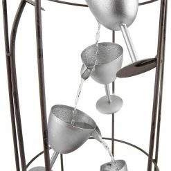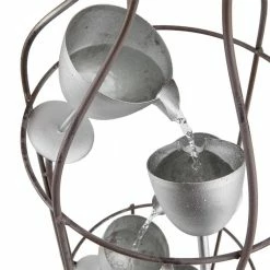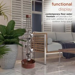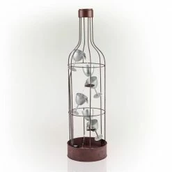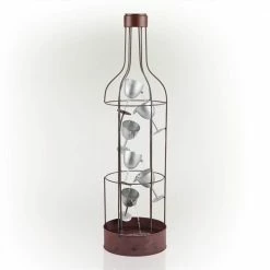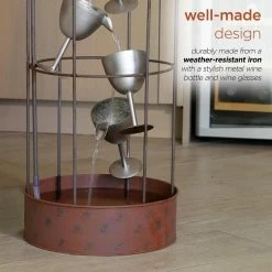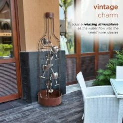 - Eclectic garden decor: contemporary floor water fountain statue in the shape of a metal wine bottle with 6 tiers of wine glasses, will provide a fun and rustic addition to your outdoor living space