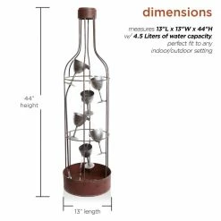 Add a classic Americana feel to your home and outdoor Decor with Alpine’s 44 in. Tall Indoor/Outdoor Bottle Shaped Water Fountain with Tiering Wine Glasses. This antique-look fountain floor statue will provide a fun and rustic addition to your outdoor or indoor living space. Constructed from durable, weather-resistant iron, this unique lawn statue will provide a tranquil and soothing addition to your home’s backyard. Replicating the shape of a wine bottle with 6 tiers of wine glasses, the fountain constantly circulates water through the glasses. Relax to the sounds of the soft, natural water flow as it streams down. Not only will the fountain add a fun, playful decoration to your yard or home, it makes a great conversation piece with family and friends. This classic and charming floor fountain is a great addition to your courtyard, patio, or yard. The wine bottle fountain gives your garden visual interest with its eclectic design and rustic feel. For quick install and convenient operating, the fountain includes all necessary parts, as well as a pump, to begin creating an outdoor oasis. This standing fountain measures 13 in. L x 13 in. W x 44 in. H to fit almost any outdoor space and includes a 1-year manufacturer’s warranty from date of purchase.