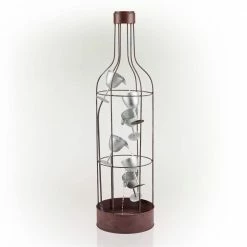 - Eclectic garden decor: contemporary floor water fountain statue in the shape of a metal wine bottle with 6 tiers of wine glasses, will provide a fun and rustic addition to your outdoor living space