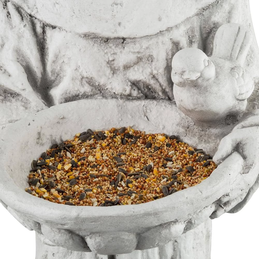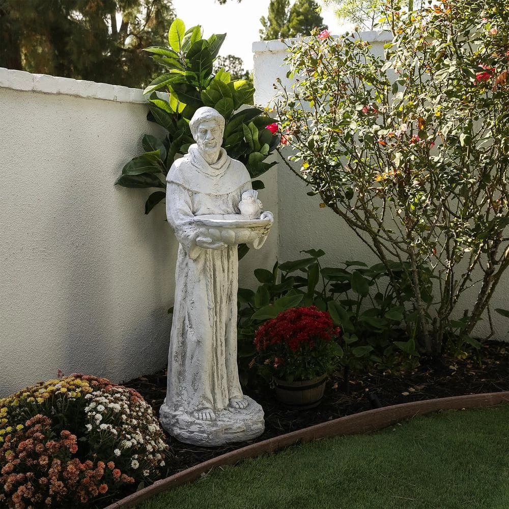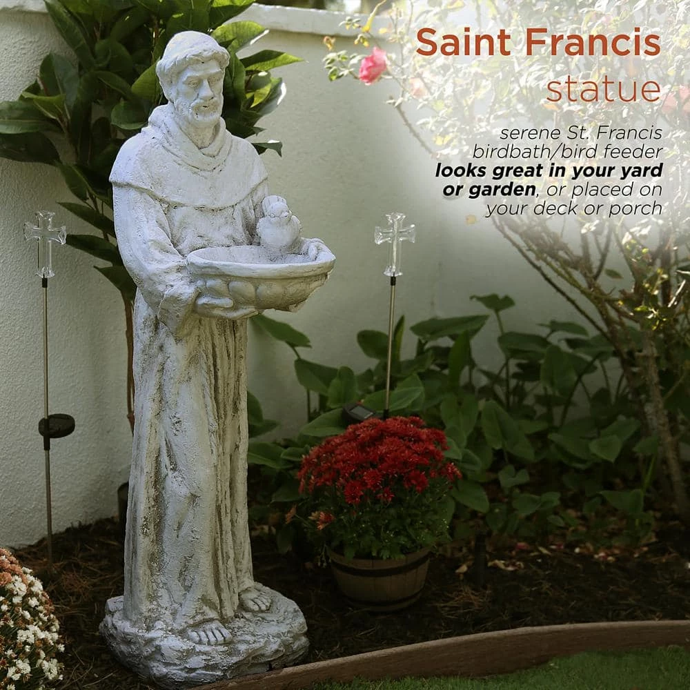 - Saint francis statue: serene st. Francis bird birdbath/feeder looks great in your yard or garden, or placed on your deck or porch