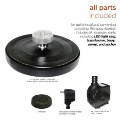 - All parts included: for quick install and convenient operating, the spray fountain includes all necessary parts, including LED light ring, transformer, buoy, pump, and anchor