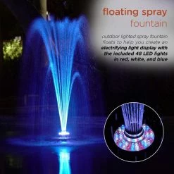 - Floating spray fountain: outdoor lighted spray fountain floats to help you create an electrifying light display with the included 48 LED lights in red, white, and blue