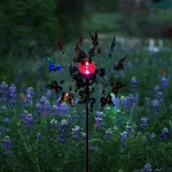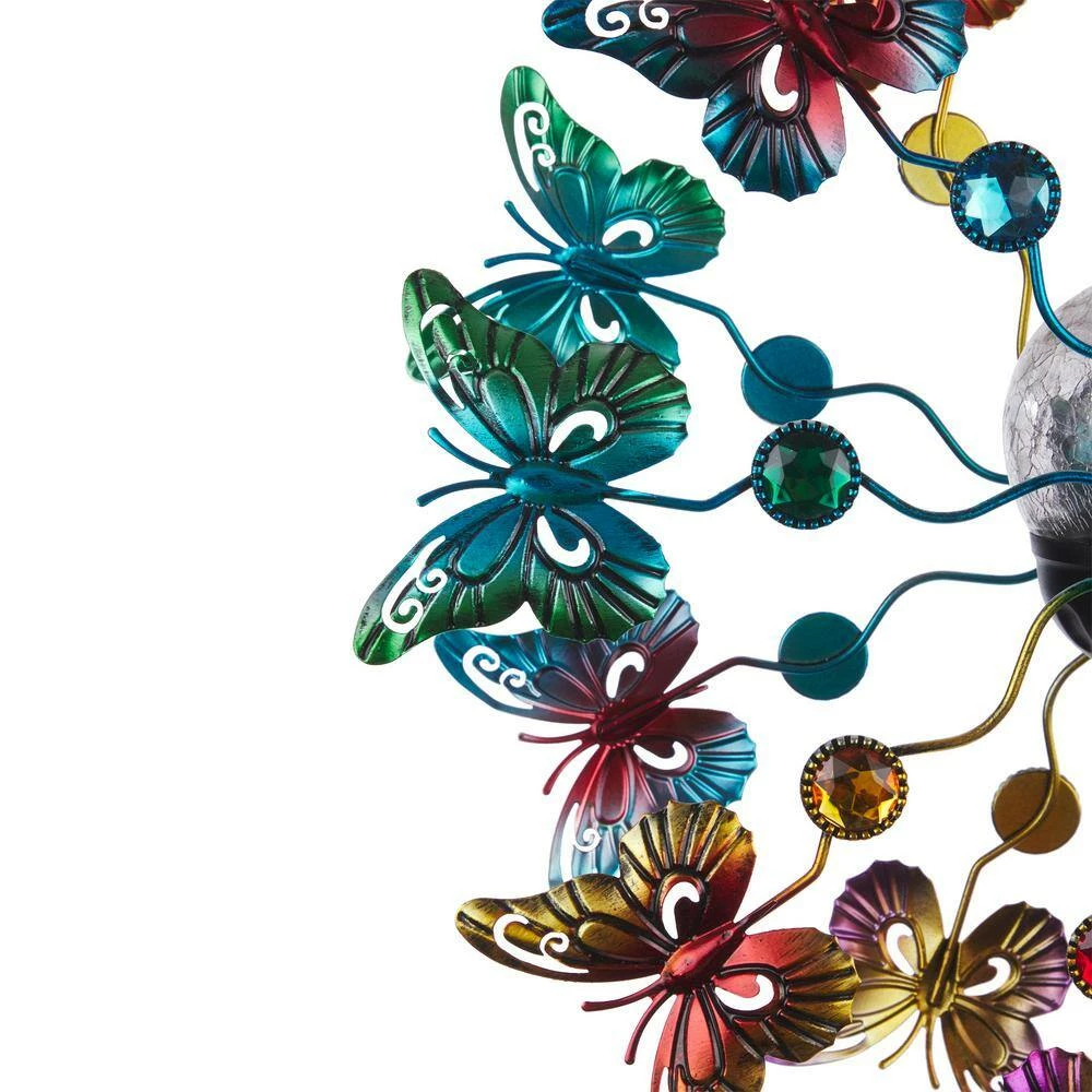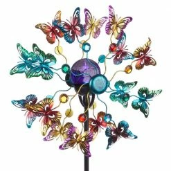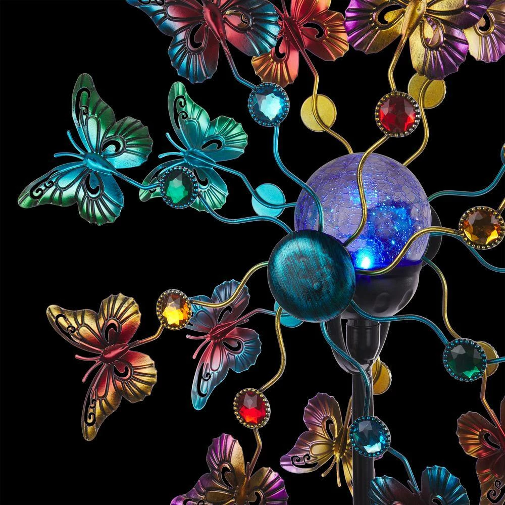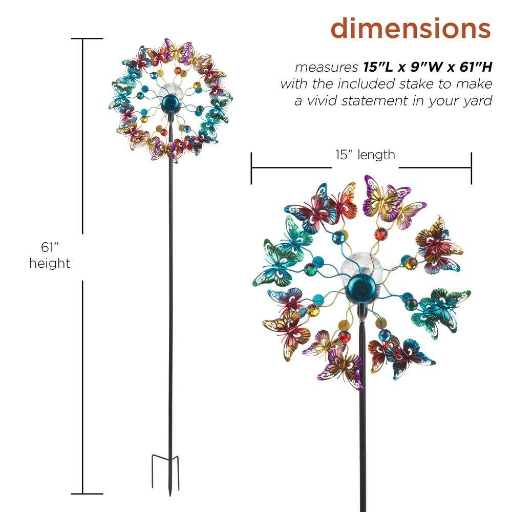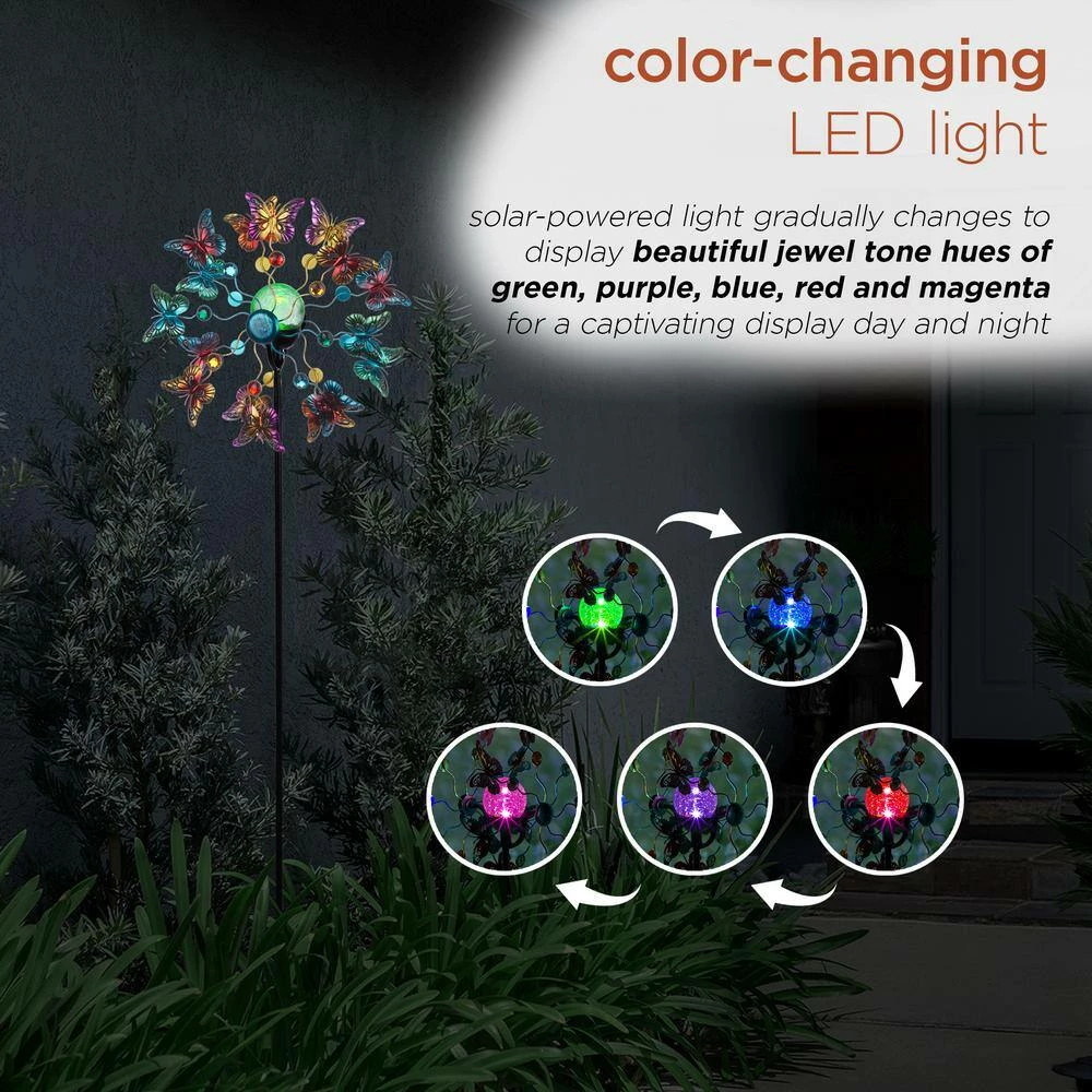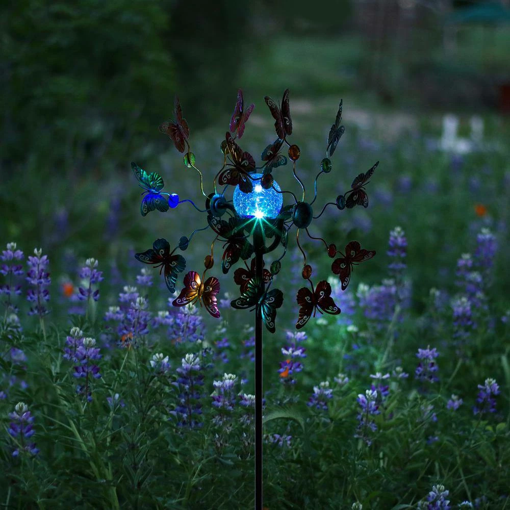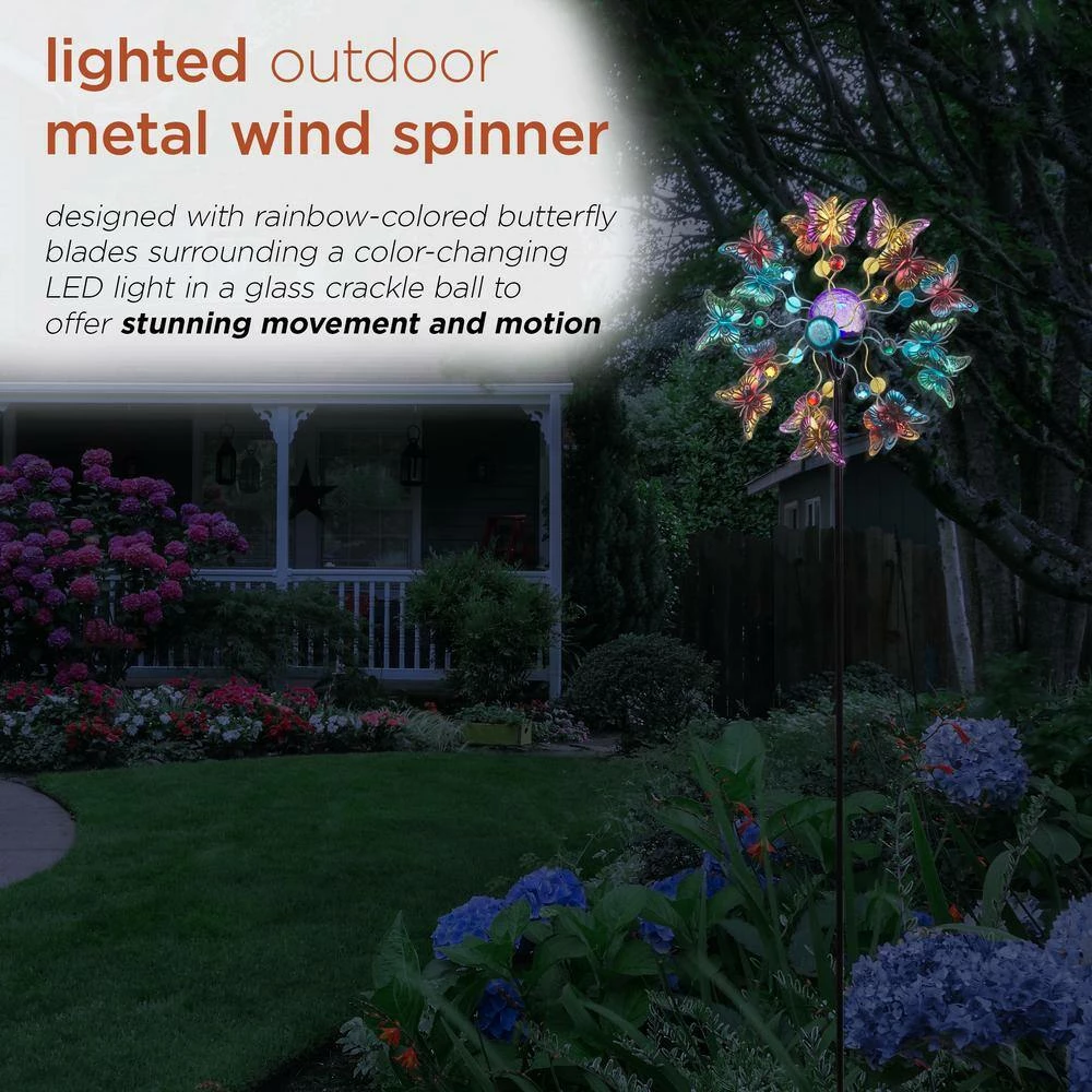 - Lighted outdoor metal wind spinner: designed with rainbow-colored butterfly blades surrounding a color-changing LED light in a glass crackle ball to offer stunning movement and motion