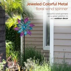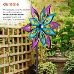 - Colorful: purple and aqua color scheme with plastic gems creates a stunning blend of moving colors as the floral-shaped blades spin in the wind