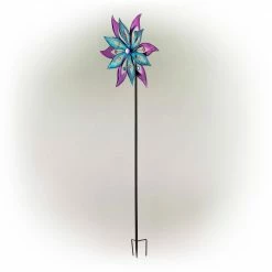Add a touch of ambience to your patio, lawn, or garden with Alpine Corporation Floral Windmill Stakes. This durable, colorful spinner is made of metal to withstand the harshest wind conditions and last throughout all seasons. The fashionable purple and aqua colors are adorned with plastic gems and are a stylish addition to your outdoor space. The colors blend together as the wind swirls the spinners to create a beautiful color collage. The spinner is the perfect portable Decor for lining your driveway, walkways, or planting beds to be easily seen and admired by passers-by. The windmill includes a 1-year limited manufacturer’s warranty for quality you can rely on. The Alpine Corporation Floral Windmill Stakes measure 21 in. x 4 in. x 64 in., the perfect size for your lawn.Alpine Corporation is one of America’s leading designers, importers, and distributors of superior quality home and garden Decor products. Alpine’s award winning in-house design team continuously develops new and innovative “statements pieces” for your home and garden. Your outdoor living spaces will be the envy of the neighborhood with our wide assortment of fresh, fashionable and contemporary products, from beautifully crafted solar garden stakes featuring patented motion and fiber optic lighting technology to gorgeous glass and glow-in-the-dark birdbaths and feeders.