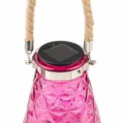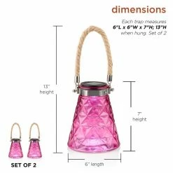 Enhance the beauty of your landscaping and outdoor scenery and ward off pesky wasps with the Alpine Corporation 7 in. tall (hanging 13 in. H) Solar Pink LED Wasp Trap. This compact and colorful beveled glass wasp catcher looks beautiful during the day and lights up at night to provide a subtle ambiance to your outdoor space. It works beautifully as a wasp trap as well as a stylish and colorful hanging or tabletop decor piece. Rest easy knowing that this reusable natural pest control contains no harmful chemicals, works all day long, and does not harm beneficial bees. Simply add a little sugar water or other sugary liquid. This attractive and functional blue wasp trap is constructed from durable glass, is made tough for outdoor use, and is weather-resistant for long-lasting, quality enjoyment in your garden. This colorful and decorative outdoor Decor features a white LED light that stays lit for up to 8 hours on one full charge. Safe and effective with no need for chemicals, this compact outdoor light and wasp trap measures 6 in. L x 6 in. W x 7 in. H (13 in. Hanging).