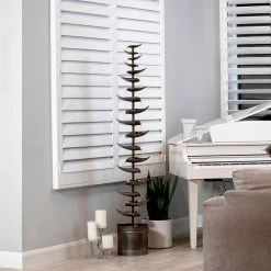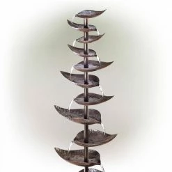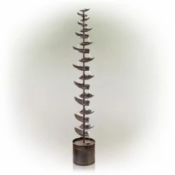 Bring calming ambiance to your space with the Alpine Corporation Hanging Leaf Tiered Floor Fountain. Set the mood for meditation or romance with this remarkable 19-tier fountain with falling leaves design. As water cascades from one leaf to the next, it makes soft sounds to help you relax. The fountain is made of durable iron with a silver finish to provide an attractive rustic look to your yard, perfect for small, tight spaces. To use, simply plug in to an outlet, fill lower basin with water, and watch as the interior pump creates a lovely water flow. With a 1-year warranty, you can be confident in the quality of your purchase. Fountain measures 11 in. L x 11 in. W x 70 in. H for a perfect fit in your yard, entryway, garden, patio, and more.Alpine Corporation is one of America’s leading designers, importers, and distributors of superior quality home and garden decor products. Alpine’s award winning in-house design team continuously develops new and innovative “statements pieces” for your home and garden. Your outdoor living spaces will be the envy of the neighborhood with our wide assortment of fresh, fashionable and contemporary products, from beautifully crafted solar garden stakes featuring patented motion and fiber optic lighting technology to gorgeous glass and glow-in-the-dark bird baths and feeders.