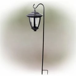 Illuminate your backyard, courtyard, or walkway with the 8 in. Hanging/Wall/Stake Outdoor Solar Powered Lantern with LED Light from Alpine Corporation. This versatile lamp features an LED light powered by solar energy to offer an illuminated path, and provides a unique and warm addition to your exterior Decor. For multiple display options, this light can be used as a wall sconce, a hanging lantern, or a yard stake. The durable lighted decor is constructed from metal and plastic. The solar powered 3-in-1 lamp is made tough for outdoor use and is weather-resistant for long-lasting, quality use in your garden or outdoor area. Line pathways, sidewalks, gardens, or pool areas with one or multiple light torches to create a warm light display. All items are included to display this lantern for the three separate configurations. The solar powered LED lamp measures 7 in. L x 6 in. W x 8 in. H, 14 in. in the sconce configuration, 25 in. in the garden stake configuration and 30 in. in the hanging configuration to fit almost any outdoor space, and includes a 1-year manufacturer’s warranty from date of purchase.