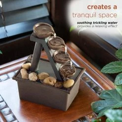 - Peaceful and meditative ambiance: relax to the sounds of the calming natural water flow as it trickles down from the top tier of the fountain, while adding visual interest to your conversation set or table