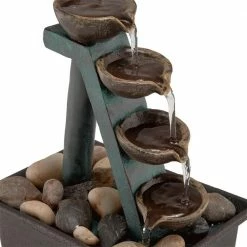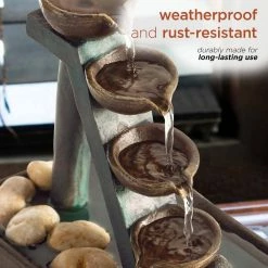 - Weatherproof and durable design: constructed from durable polyresin and plastic, the fountain is weatherproof, rust-resistant, and resilient and can be used in your home’s interior decor or outside