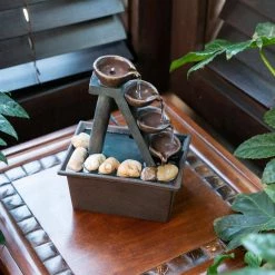 - Tranquil tabletop decor: tabletop water fountain with 4 tiers and rustic bowls provides a soothing addition to your office or living space