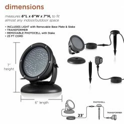- Compact pond light and 1-year warranty: measures 6 in. L x 6 in. W x 7 in. H to fit almost any outdoor water accessory, and includes a two year manufacturer’s warranty from date of purchase