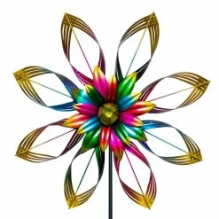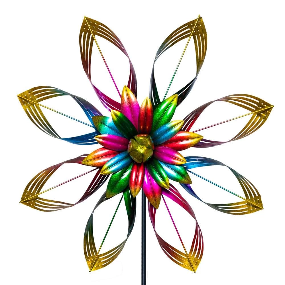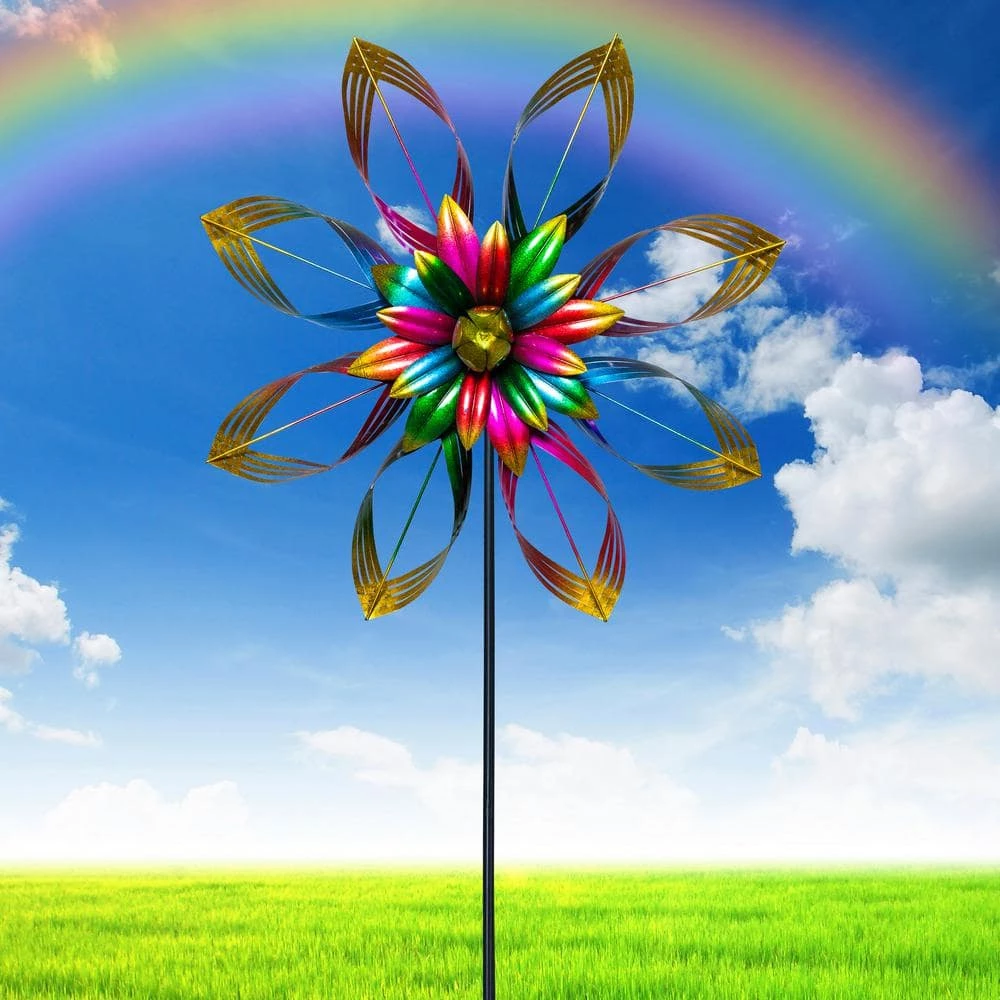 - Outdoor metal wind spinner: designed with rainbow-colored flower blades surrounding a bright yellow jewel to offer stunning movement and motion