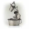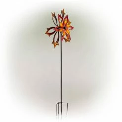 Welcome your guests with the 96 in.” tall Outdoor Metal Flower Dual Kinetic Spinner Stake Yard Decoration from Alpine Corporation. This multicolored outdoor yard art is made with a double-sided red, yellow and brown flower design and adds a breathtaking display of spinning movement and motion with dual spinning action. Skillfully crafted from weather-resistant and sturdy iron and glass, the all-season decorative spinner can be cleaned easily to keep its reflective shine and rustic appearance. Add one or multiple spinners to enhance your garden’s natural beauty with their farmhouse design and eye-catching movements. Add an attractive outdoor display by lining several spinners along your driveway or front walkway or in your garden. All parts are included for a quick install and convenient outdoor decorating. The outdoor spinner includes an attached ground stake to secure along pathways or in your flowerbeds. This kinetic wind spinner measures 37 in. L x 11 in. W x 96 in. H with included ground stake, and includes a 1-year manufacturer’s warranty from date of purchase.