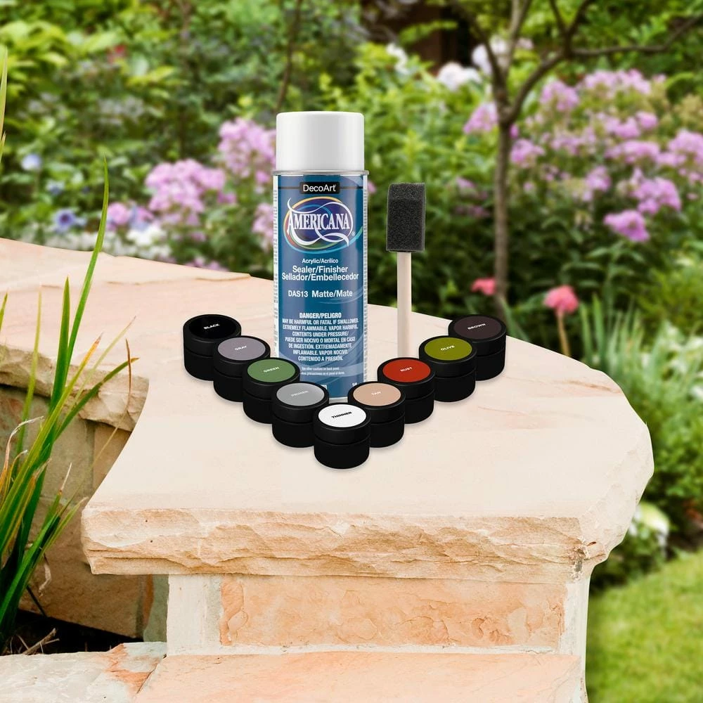 - Multi-piece paint set: includes primer, thinner, seven vibrant paint colors, sealer, and a sponge brush for easy touch-ups and customization