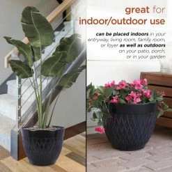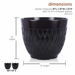 Enhance the natural beauty of your plants with the Alpine Corporation Stone-look Planters. This set of 2 matching planters feature a classic design in a black finish for a decorative way to display your plants and flowers. The integrated bottom holes allow you to plant directly into the planters while allowing for proper drainage after watering. These versatile planters can be placed indoors in your entryway, living room, family room, or foyer as well as outdoors on your patio, porch, or in your garden. use separately in different locations or together to create a coordinated garden display. The durable stonelite material provides long-lasting use. Each planter measures 15 in. L x 15 in. W x 12 in. H to fit in almost any indoor or outdoor area, and they also include a 1-year manufacturer’s warranty from date of purchase. Alpine Corporation is 1 of America’s leading designers, importers, and distributors of superior quality home and garden decor products. Alpine’s award winning in-house design team continuously develops new and innovative statements-pieces for your home and garden.