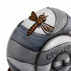 - Snail garden statue: small snail statue with gray-toned striped shell with a copper-colored dragonfly accent and engraved with the word “create” to add an inspiring and adorable accent to your garden