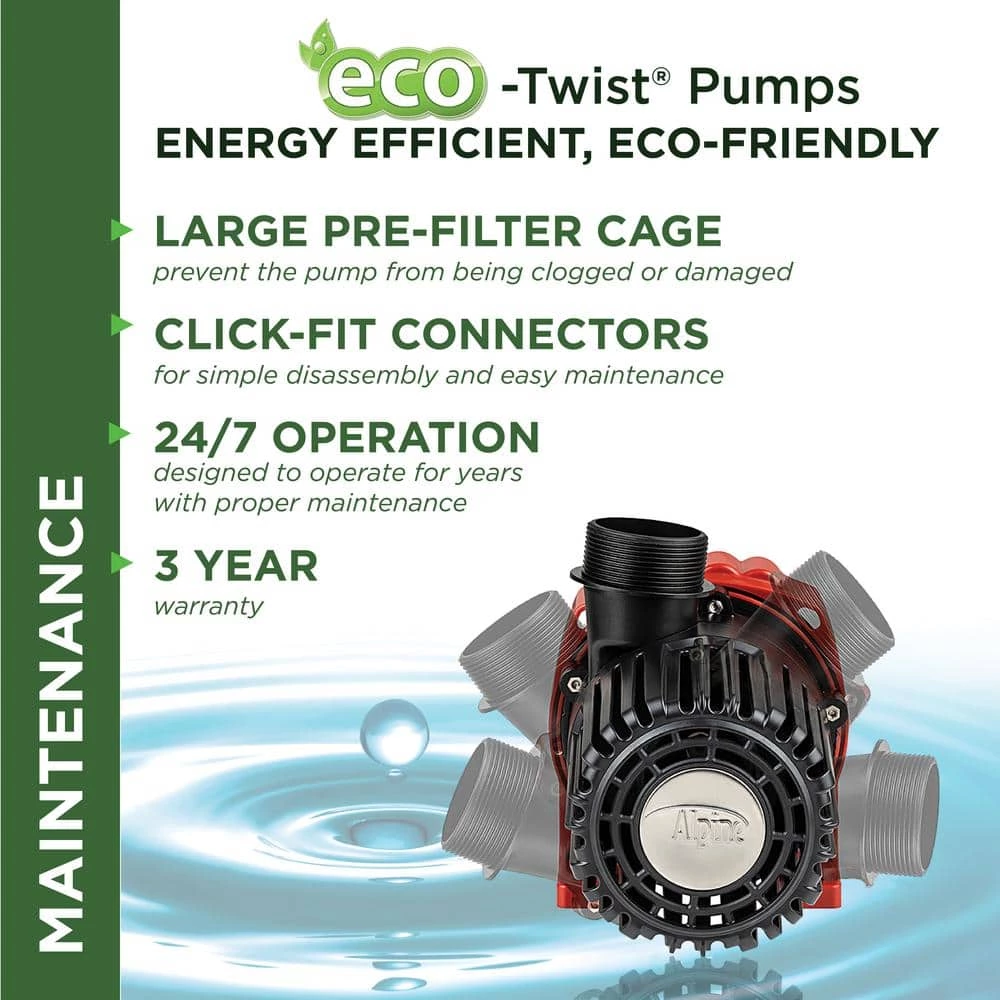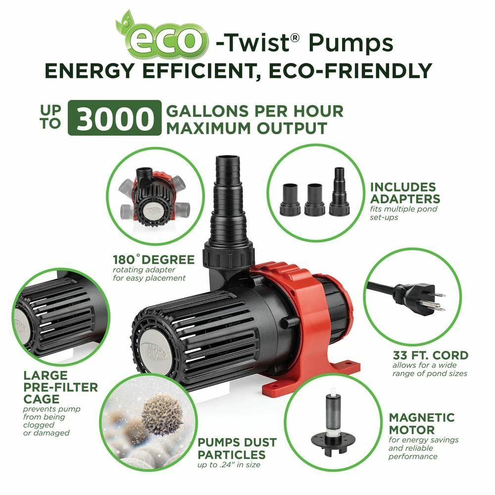 - Eco-twist technology: eco-twist boasts new magnetic technology engineered to deliver continuous, reliable high-power performance and high flow rates with a gph of 3000 for fountains and waterfalls