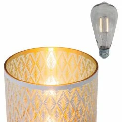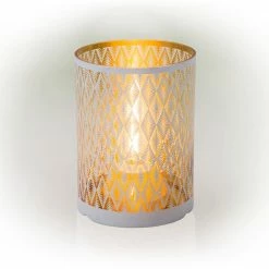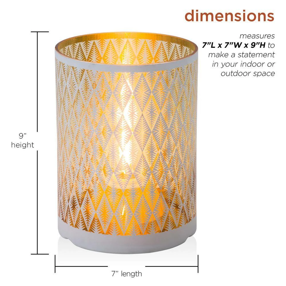 Create a soft, glowing atmosphere with the Alpine Corporation Indoor/Outdoor Diamond Lantern with Warm White Tungsten Light and Timer. This substantial glass lantern features a white diamond pattern that illuminates your indoor or outdoor space. Perfect for entertaining or creating a romantic mood with the warm white glow of the tungsten light bulb. This lantern comes complete with a battery operated timer so it will turn on for 6 hours and off for 18 hours whenever you like. The durable design of this lantern provides long-lasting use year after year. Measuring 7 in. L x 7 in. W x 9 in. H, the Alpine Corporation Indoor/Outdoor Diamond Lantern with Warm White Tungsten Lights and Timer makes a statement in your indoor or outdoor space and uses 3 AA batteries (not included).Alpine Corporation is one of America’s leading designers, importers, and distributors of superior quality home and garden decor products. Alpine Corporation’s award winning in-house design team continuously develops new and innovative “statement pieces” for your home and garden. Your outdoor living spaces will be the envy of the neighborhood with our wide assortment of fresh, fashionable and contemporary products, from beautifully crafted solar garden stakes featuring patented motion and fiber optic lighting technology to gorgeous glass and glow-in-the-dark bird baths and feeders.