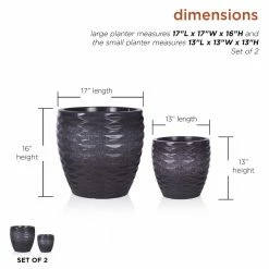 - Multiple sizes and 1-year warranty: large planter measures 17 in. L x 17 in. W x 16 in. H and the small planter measures 13 in. L x 13 in. W x 13 in. H and they include a 1-year manufacturer’s warranty from date of purchase