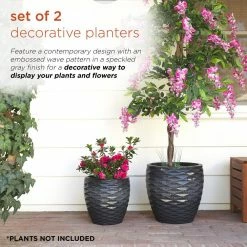 - Set of 2 decorative planters: feature a contemporary design with an embossed wave pattern in a speckled gray finish for a decorative way to display your plants and flowers