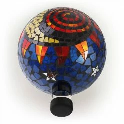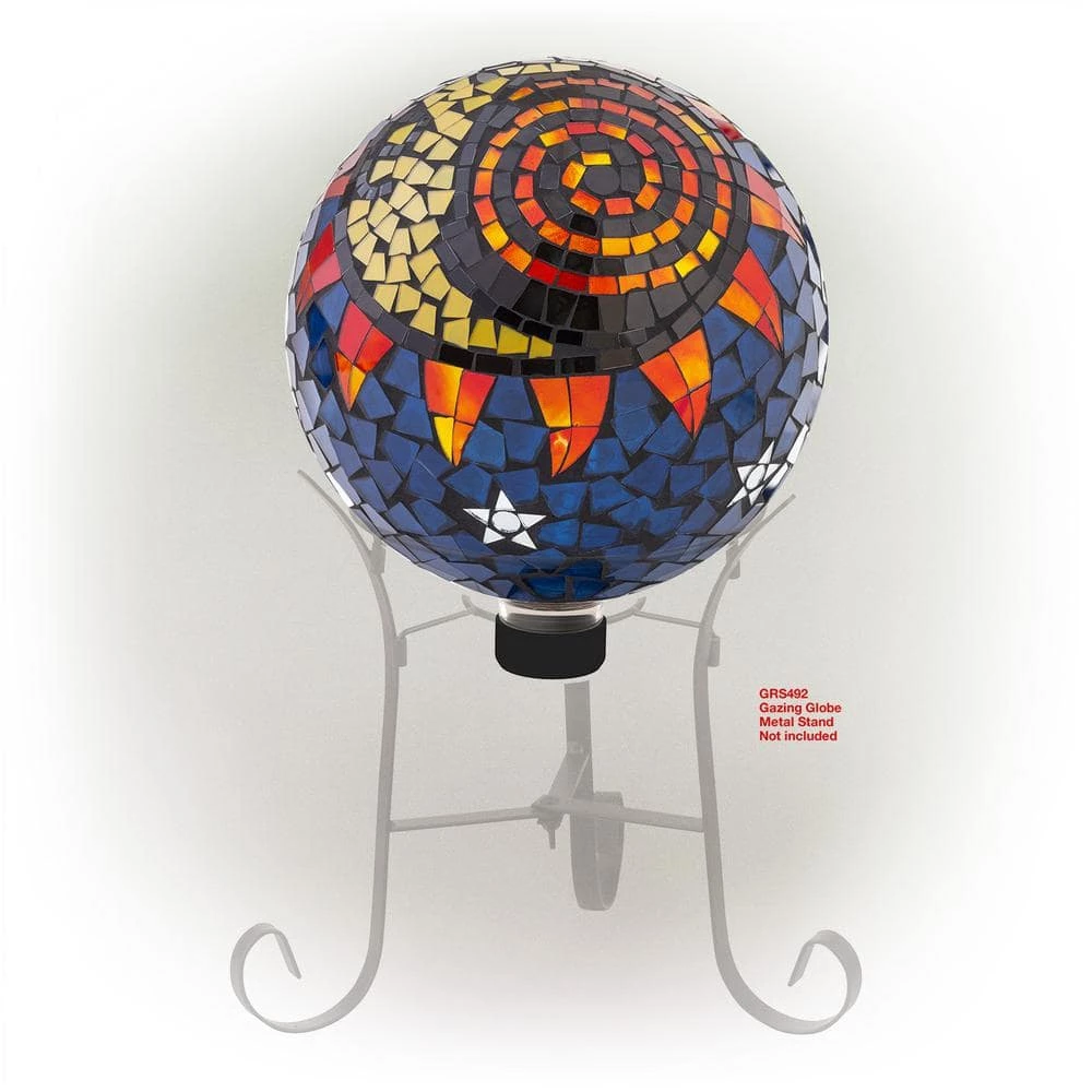 Add beautiful, bright color to your yard with Alpine’s Indoor/Outdoor Glass Mosaic Sun and Moon Design Gazing Globe Yard Decoration. Made from different colored pieces of glass, this spherical yard art Decor provides a unique and decorative addition to your home’s interior or exterior Decor with its colorful, sun and moon design. The multi-use glass gazing ball can be used in a variety of ways, including in your garden, patio, courtyard, or front door entryway or as an accent piece in your living room. Add one or multiple glass orbs to enhance your formal or informal garden’s natural beauty with their electrifying colors and iridescent shine. Use a metal stand (sold separately) in varying heights to help create visual interest and depth to your soon-to-be award-winning lawn. This colored glass gazing ball will add vibrant color and shine to your garden, and will help promote a healthy garden by reflecting light on sunny days. This colorful glass gazing sphere measures 10 in. L x 10 in. W x 12 in. H to fit almost any outdoor area and includes a 1-year manufacturer’s warranty from date of purchase.
