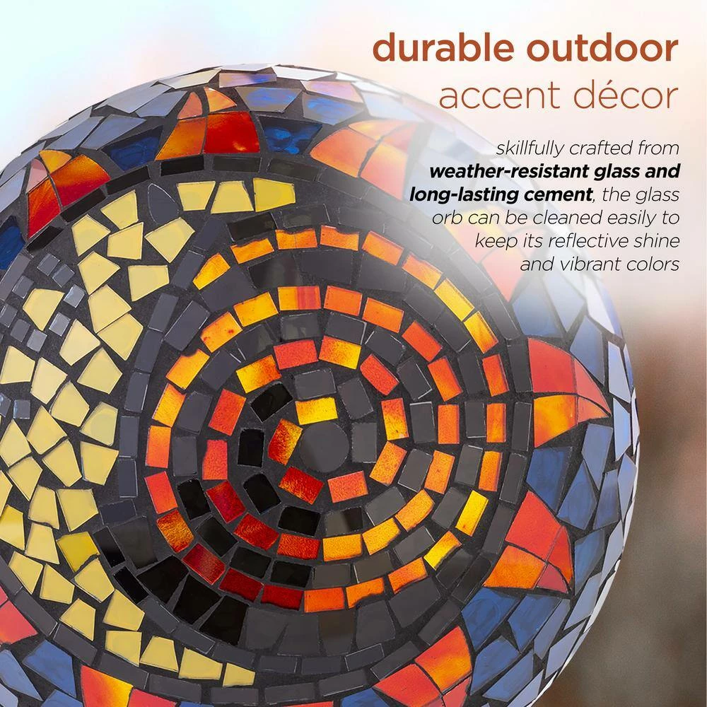 - Durable outdoor accent decor: skillfully crafted from weather-resistant glass and long-lasting cement, the glass orb can be cleaned easily to keep its reflective shine and vibrant colors