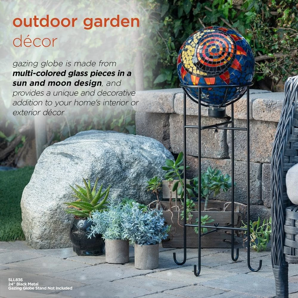 - Outdoor garden decor: gazing globe is made from multi-colored glass pieces in a sun and moon design, and provides a unique and decorative addition to your home’s interior or exterior decor