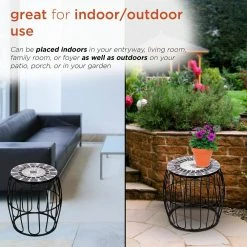 Enhance the natural beauty of your plants with the Alpine Corporation Metal and Mosaic Tile Planter Stands. This set of 2 coordinating planter stands feature beautiful marbled glass mosaic tile tops in shades of gray on decorative black metal bases for an upscale and artful way to display your plants and flowers. These versatile plant stands can be placed indoors in your entryway, living room, family room or foyer as well as outdoors on your patio, porch or in your flowerbeds. Use each separately in different locations or together to create an elegant garden display or use them as decorative accent tables. The durable metal frames with marbled glass mosaic tile tops provide long-lasting use. The large plant stand measures 20 in. L x 20 in. W x 19 in. H and the small plant stand measures 15 in. L x 15 in. W x 17 in. H to fit in almost any indoor or outdoor area and they include a 1-year manufacturer’s warranty from date of purchase.