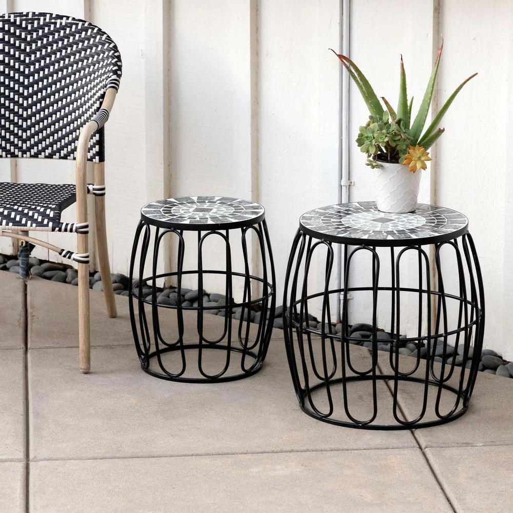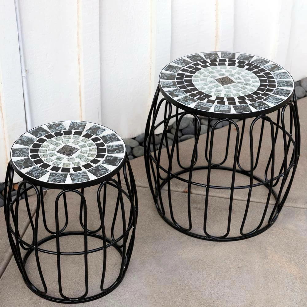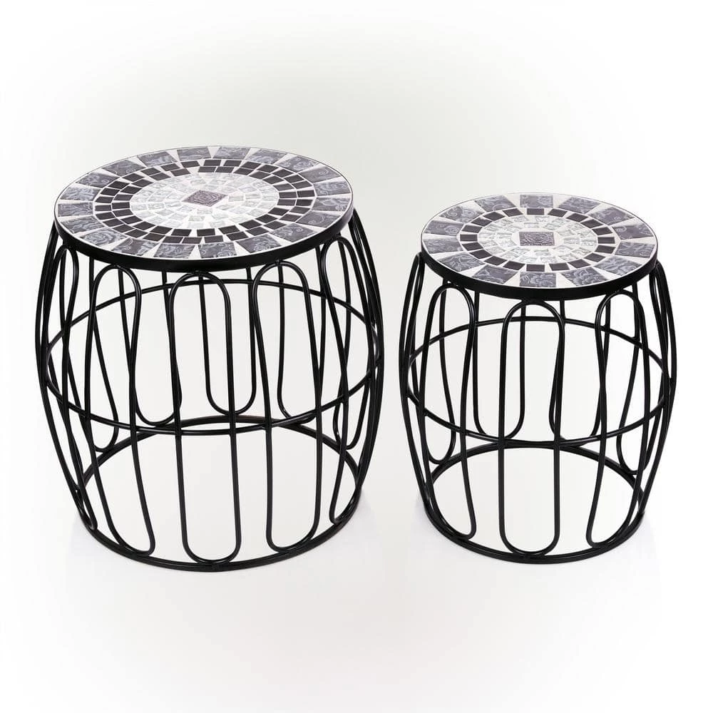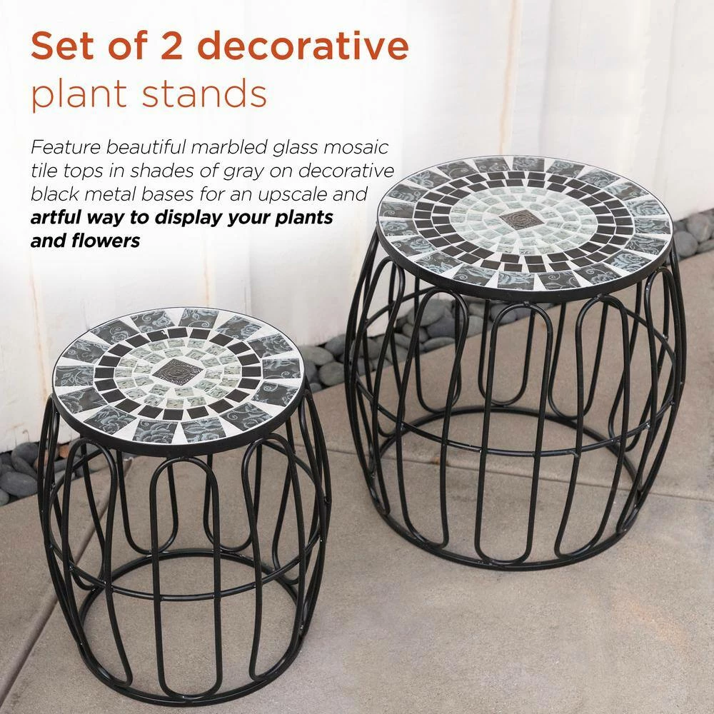- Set of 2 decorative plant stands: feature beautiful, marbled glass mosaic tile tops in shades of gray on decorative black metal bases for an upscale and artful way to display your plants and flowers