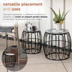 - Versatile placement and uses: use each separately in different locations or together to create an elegant garden display or use them as decorative accent tables
