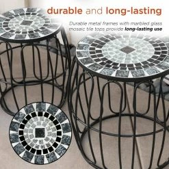 - Durable and long-lasting: durable metal frames with marbled glass mosaic tile tops provide long-lasting use
