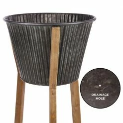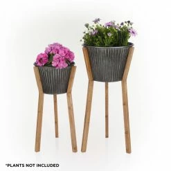 - Set of 2 decorative planters: feature galvanized metal buckets on wooden stands for a decorative way to display your plants and flowers