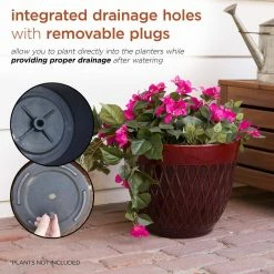- Integrated drainage holes with removable plugs: allow you to plant directly into the planters while providing proper drainage after watering