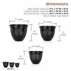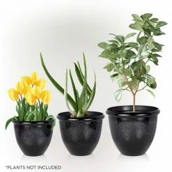 - Set of 3 decorative planters: feature a classic design in a speckled black finish for a decorative way to display your plants and flowers