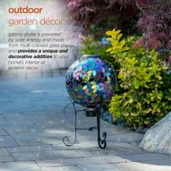 - Outdoor garden decor: gazing globe is powered by solar energy and made from multi-colored glass pieces, and provides a unique and decorative addition to your home’s interior or exterior decor