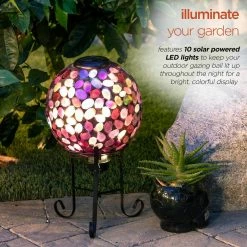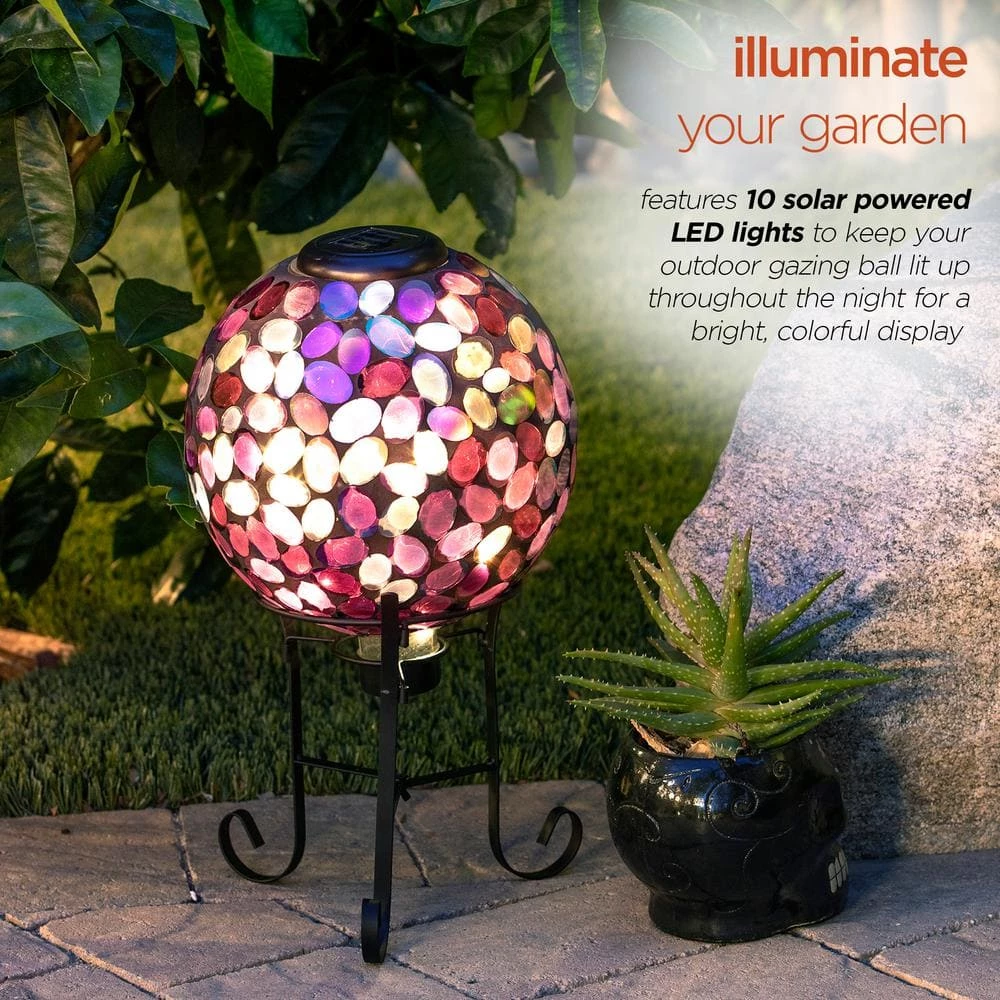 - Illuminate your garden: features 10 solar powered LED lights to keep your outdoor gazing ball lit up throughout the night for a bright, colorful display