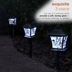 - Exquisite 3-piece: this set of 3 pathway lights provide a soft, homey glow to your driveway, pathway, or garden