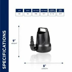 - Large waterfall pump and three-year warranty: measures 8 in. L x 6 in. W x 9 in. H for use in waterfall fountains and filtration systems, and includes a three-year manufacturer’s warranty from date of purchase
