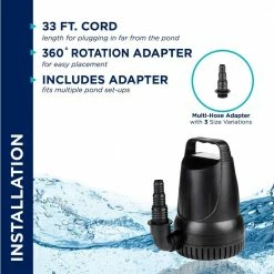 - Easy installation: pump can be used vertically or horizontally for convenient placement in your pond, and has a 33′ long cord for easy placement and accessibility