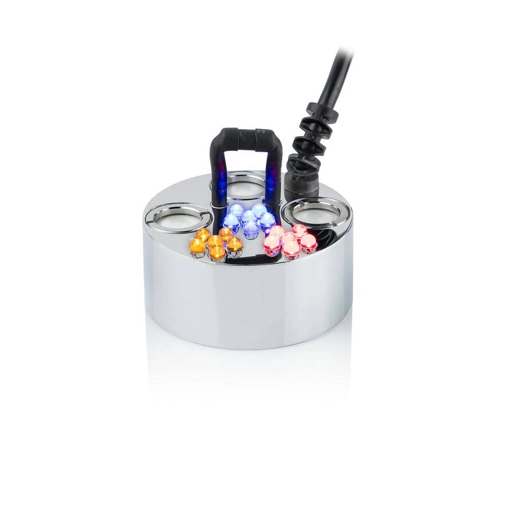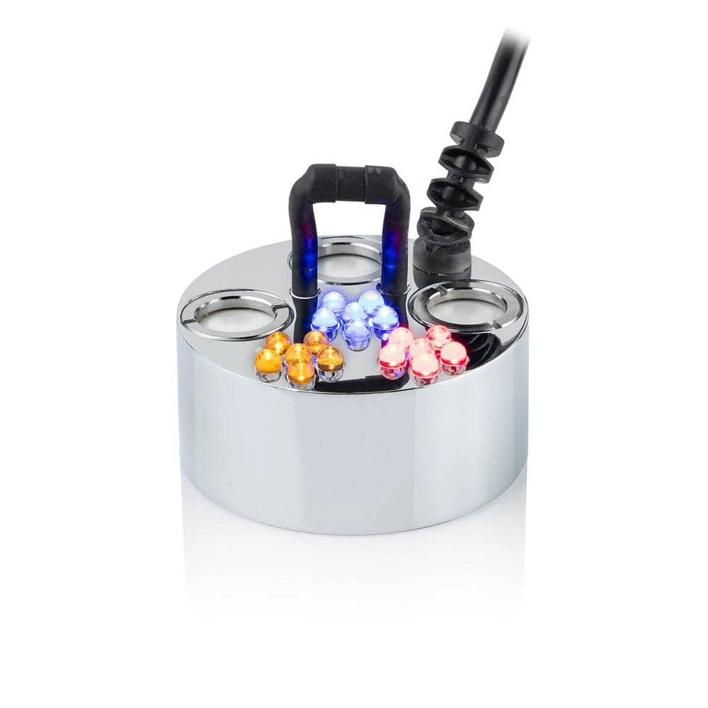 Cost-saving, energy-efficient, and submersible, the Alpine Corporation Fogger is the perfect addition to your outdoor pond. Our pond foggers are like no other. Emitting a magical, dry ice-like fog in seconds, our “Super Power” pond foggers come with and without LED Lights. These pond foggers will dazzle your guests and bring the magic of nature to your own backyard. Using ultra-sonic sound waves and no chemicals with multiple openings, it delivers 3-5 times more fog than our single head foggers and are “FISH SAFE”. The integrated LED lights bring brightness to your space. The Alpine Super Pond Fogger with Floating Ring and LED Lights measures 6 in. L x 6 in. W x 3 in. H, making it the ideal pond fogger for your home.Alpine Corporation is one of America’s leading designers, importers, and distributors of superior quality home and garden decor products. Alpine’s award winning in-house design team continuously develops new and innovative “statements pieces” for your home and garden. Your outdoor living spaces will be the envy of the neighborhood with our wide assortment of fresh, fashionable and contemporary products, from beautifully crafted solar garden stakes featuring patented motion and fiber optic lighting technology to gorgeous glass and glow-in-the-dark bird baths and feeders.