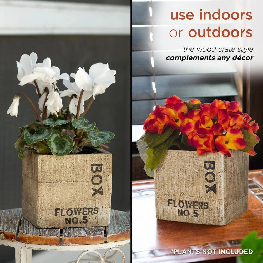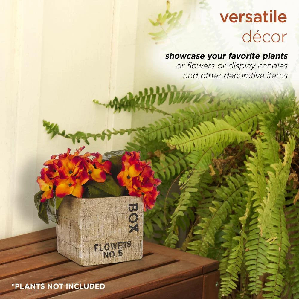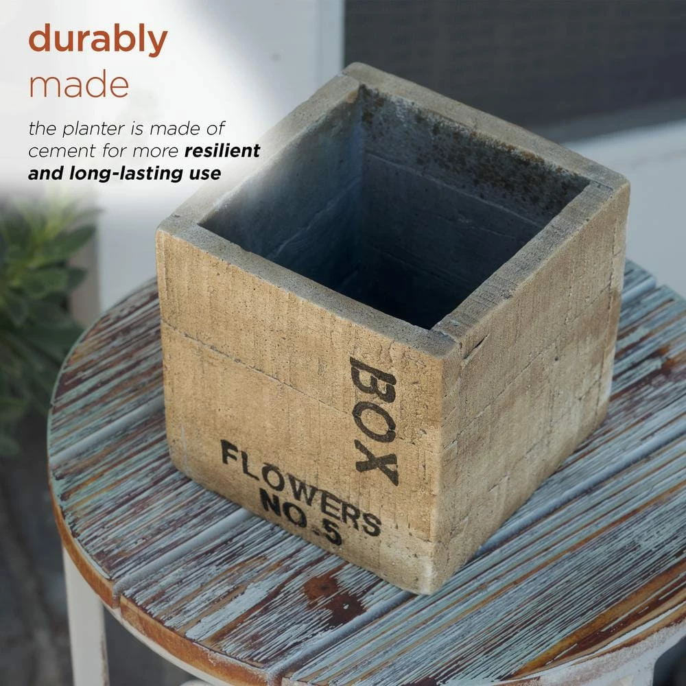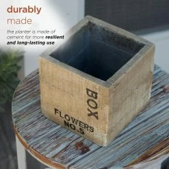 Complement your home with the Alpine Corporation Wood-Finish Square Flower Box Planter. This cement planter convincingly mimics the appearance of a distressed wooden crate, creating a rustic and natural addition to your decor. This versatile-piece can be placed indoors or outdoors to enhance your garden, deck, lawn, dining table, shelves, or other surfaces. Plant your favorite flowers in this spacious crate, or display candles and other decorative items to contribute to a vintage-looking space. Made durably of cement to last for many-years, this 5 in. x 5 in. x 5 in. planter fits almost any indoor or outdoor setting. Includes a 1-year manufacturer’s warranty from date of purchase. Alpine Corporation is 1 of America’s leading designers, importers, and distributors of superior quality home and garden decor products. Alpine’s award winning in-house design team continuously develops new and innovative statements-pieces for your home and garden. Your outdoor living spaces will be the envy of the neighborhood with our wide assortment of fresh, fashionable and contemporary products, from beautifully crafted solar garden stakes featuring patented motion and fiber optic lighting technology to beautiful fountains and delightful bird baths and feeders.